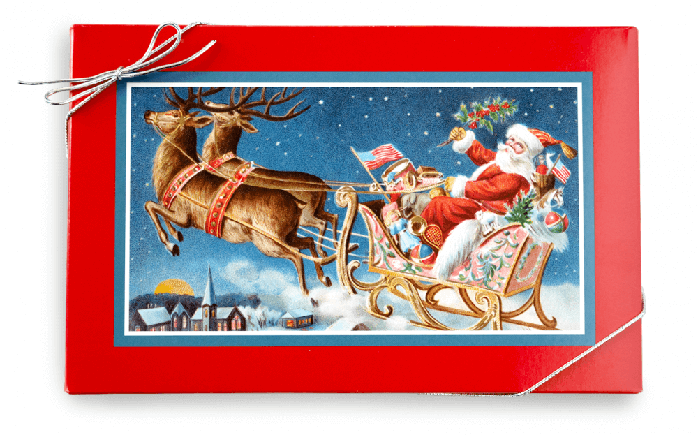 Your choice of two freshly roasted, cinnamon glazed almonds, pecans, or cashews, in a Santa Sleigh box, This is the perfect Holiday gift for family, friends, employees, and clients, All gift boxes contain freshly roasted products and are sealed in the box for maximum freshness.